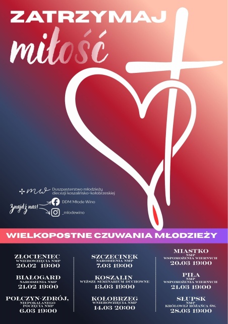 - 20 marca (piątek), godz. 19:00 – Miastko, parafia pw. NMP Wspomożenia Wiernych